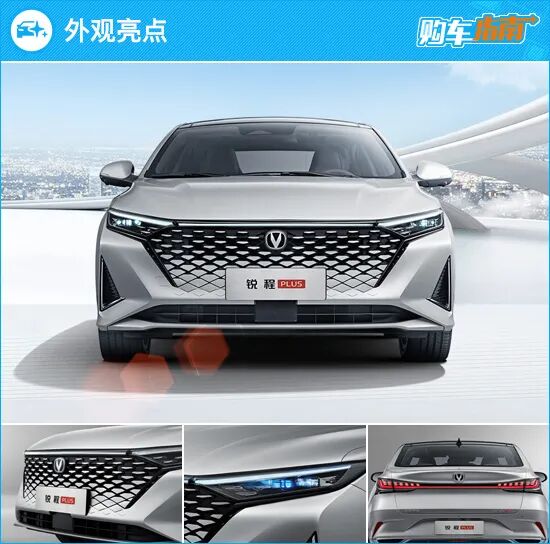 外观方面,锐程PLUS采用了与长安UNI家族相似的前脸造型,无边界格栅内部采用点阵元素装饰,搭配开眼角造型的全LED大灯,视觉冲击力较强。前包围采用X造型设计,两侧还配备了锋利的三角形空气导流槽,极具运动感。