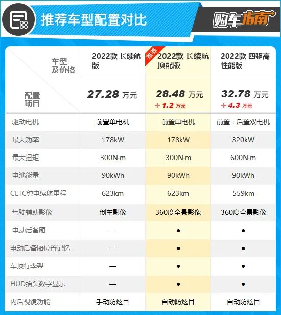 再往上就是配备双电机的车型,四驱高性能版和推荐车型的配置基本一致,主要区别在于后桥增加一台电机后,整体性能有了大幅提升。不过Ariya艾睿雅的定位和属性还是更偏于家用,320kW、600N·m的性能在日常没有太多发挥场景,且性能增强、车重增加后,当下电动车更为重要的续航水平相比推荐车型有了明显缩水。更重要的是,升级所需的费用多达4.3万元,整体来说性价比不高,不做推荐。综上,长续航顶配版是Ariya艾睿雅各车型当中最具性价比,也是车质网最推荐您购入的选择,购车时可以优先考虑。