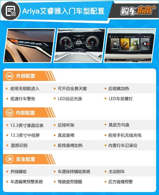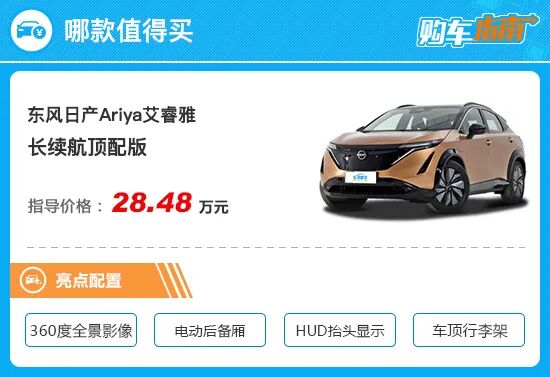 长续航版是Ariya艾睿雅的入门车型,售价为27.28万。价格达到了一定水平,基础配置层面也不用担心,包括自适应远近光源、双12.3英寸大联屏、真皮座椅、前排座椅加热、L2级辅助驾驶功能等等都有,满足日常基本需求没有问题。不过这款车型在实用性层面还有一定欠缺,对于一台尺寸不算小的SUV,没有配备360度全景影像和电动后备厢,对于日常泊车安全以及用车便利性方面会有比较明显的影响,特别是女性车主,SUV上没有电动后备厢和全景影像,会有诸多不便。如果您的预算不是特别吃紧,我更推荐您看看长续航顶配版,再增加不多的预算,明显补齐短板。