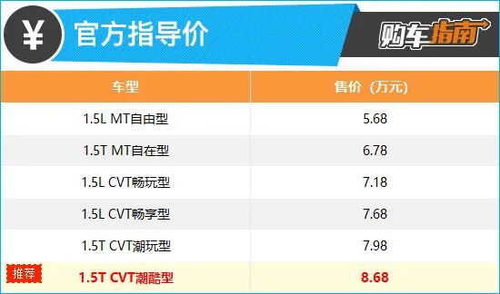 五菱星驰定位为小型SUV,目前共有6款车型面向市场,两款手动挡、四款自动挡,售价区间为5.68-8.68万元。购买五菱星辰的车主,还可以享受2年0息、3年免费车机流量(2G/月),并享受国家购置税减半政策,价格方面对于年轻人格外友好。(具体详询当地经销商)