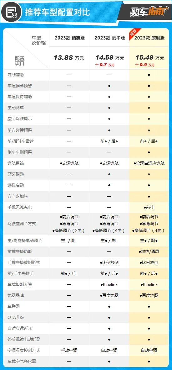 相比之下,旗舰版车型更值得推荐。从售价来看,推荐车型相比豪华版贵出了9000元,但配备了全套的Hyundai SmartSense智心合一安全系统,可实现L2级自动驾驶,单这一项配置成本便远超差价。此外,推荐车型提供了较为贴心的方向盘加热和座椅加热/通风,并且前排座椅均支持电动调节,还配备了实用性较强的手机无线充电功能。综合差价、功能实用性等多重因素考虑,旗舰版在菲斯塔N Line全系车型中性价比更高,建议购买时优先选择。