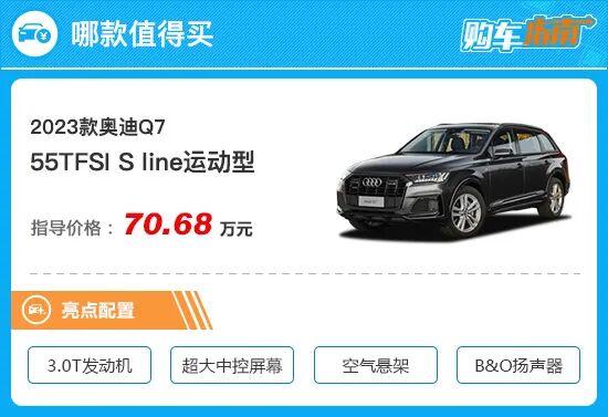 综合来看,2023款奥迪Q7 55TFSI S Line虽然比其入门车型贵出了7万多,但换来的却是实打实有用的配置,而这些也是真正消费奥迪Q7的用户所看重的。当然这些只是我个人的主观推荐,如何选择还需消费者自行定夺。如果您近期有入手奥迪Q7的打算,可以重点关注奥迪Q7 55TFSI S Line这款车型。