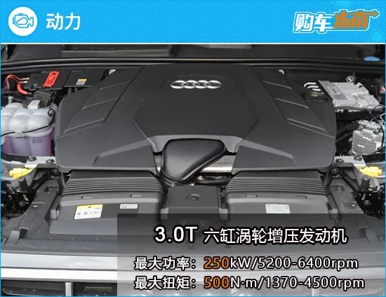 2023款奥迪Q7搭载了两款不同排量的发动机,分别为最大功率195kW,最大扭矩370N·m的2.0T直列4缸发动机;以及最大功率250kW,最大扭矩500N·m的3.0T V型6缸发动机。它们均匹配来自采埃孚的8速手自一体式变速箱。