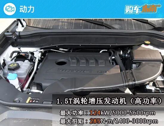 动力方面,哈弗H6国潮版提供了1.5T与2.0T两种发动机。其中1.5T发动机分为110kW和124kW两种版本,峰值扭矩分别为210N·m和285N·m;而2.0T发动机的最大功率为165kW,峰值扭矩为385N·m,破百仅需7.6秒。而在传动系统方面,新车全系匹配的都是7速湿式双离合变速箱。