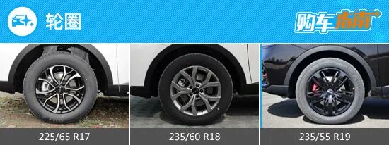 轮圈方面,根据配置不同新车共提供了三款轮圈尺寸,其中仅有入门版车型采用17英寸轮圈;中配车型采用枪灰色18英寸轮圈;而从豪华版配置开始均配备235/55 R19规格双五辐黑化轮圈,内部还采用红色刹车卡钳彰显运动感。