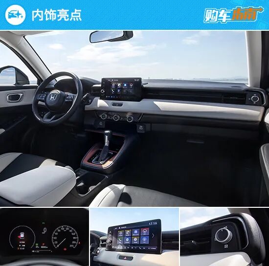 内饰部分,2023款广汽本田缤智延续了时尚与精致相结合的设计理念,双色配色方案不仅凸显了层次,车门饰板还采用了同色设计,营造出很强的包裹感。中控台和车门饰板辅以大面积皮质包裹,用料出色。此外,新车还配备了全液晶仪表、悬浮式多媒体触控屏、独立空调面板以及序列式机械挡杆等配置,科技氛围到位的同时还确保了出色的实用性。
