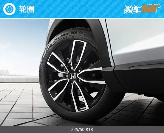 2023款广汽本田缤智提供了2种尺寸轮圈,其中入门版和次低配车型均为17英寸,轮胎尺寸为215/60 R17。而顶配车型的轮圈尺寸则为18英寸,轮胎型号为225/50 R18,采用了双色双五辐式设计,辅以镀铬和高光黑色材质,彰显出不俗的时尚感。