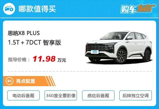 再向上就是高配以及顶配车型,主要是主动安全以及辅助驾驶配置的提升,对于需求实用性的家庭用户来说,仅能算是锦上添花,而且升级所需的费用较高,个人认为必要性不强。综上,1.5T+7DCT智享版是思皓X8 PLUS全系当中,车质网最推荐购入的车型,购车时可以优先考虑。