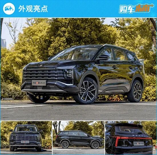 采用了全新设计语言的思皓X8 PLUS相当有辨识度,无边界样式进气格栅内部融入有层叠排列的镀铬饰条,高档感十足。两侧灯组也和中网融为一体,并且采用了横贯式LED日间行车灯,明显提升了车头的视觉宽度,整体气势显现明显。另外,车身的细节设计也较为出色,腰线从前轮拱上沿一直延伸至车尾,视觉修长,“鲨鱼鳍”造型的窗线设计不仅时尚,更营造出了蓄势待发的运动姿态,再配合2830mm的长轴距和较短的前后悬,更显大气活力。