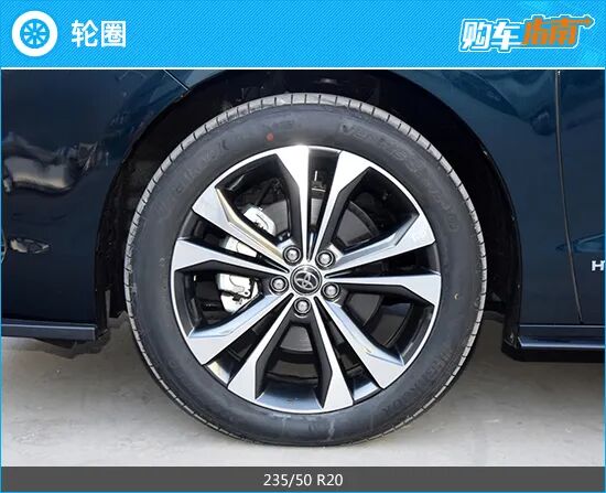 2022款一汽丰田格瑞维亚全系标配20英寸轮圈,其中,顶配车型配备了双色双五辐式造型,颇为动感时尚。此外,轮胎尺寸除了福祉版车型为235/60 R18之外,其余车型均为235/50 R20。