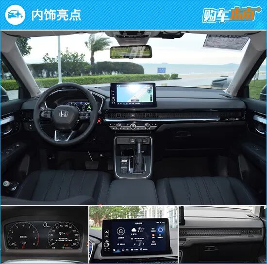 全新广汽本田皓影内饰采用了家族式设计语言,贯穿的蜂窝式空调出风口配合平直的中控台增加了内部层次感。除精英版两款车型配备了7英寸液晶仪表外,其余车型均配备了10.2英寸全液晶仪表。全系标配的10.1英寸中控屏幕显示较为清晰,并全系搭载了Honda CONNECT 3.0智导互联系统,可支持车联网、语音交互以及手机互联等功能。