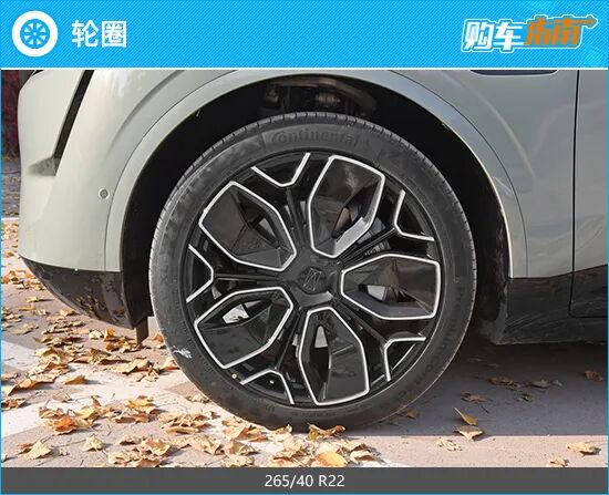阿维塔11针对不同车型提供有两种规格的轮圈,都是“大脚”。中低配车型配备的是21英寸的轮圈,匹配规格为265/45 R21的轮胎;高配和顶配车型搭载22英寸双色轮圈,大面积的封闭样式,更有利于降低风阻,优化续航。匹配规格为265/40 R22的马牌PC6运动轮胎。
