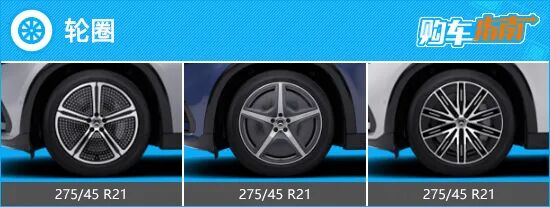 轮圈方面,奔驰EQS SUV标配21英寸铝合金轮圈,轮胎尺寸均为275/45 R21。虽然参数相同,但是轮圈设计却并不一致,很好地区分了三款配置车型。对比来看,个人感觉还是顶配版车型使用的多辐式轮圈更加简约大气,同时也比较符合旗舰级定位。
