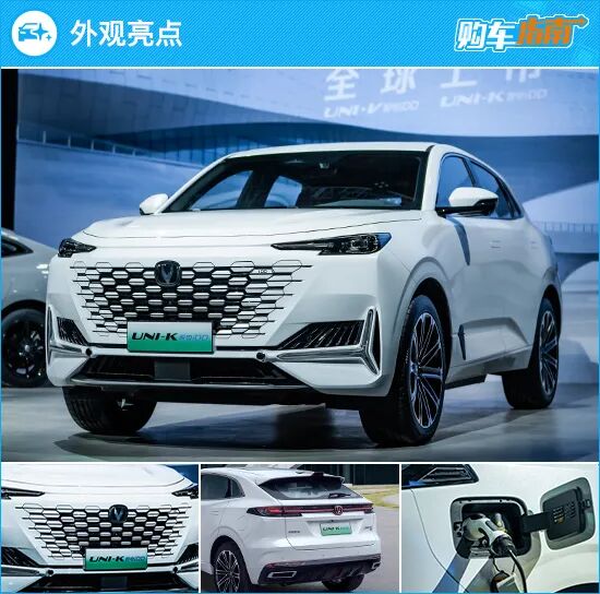 长安UNI-K 智电iDD基本延续了燃油版车型的整体设计,无边界中网、细窄造型大灯以及位于前包围两侧的分体式LED日间行车灯,均极具辨识度。车侧上扬的腰线与下压的车顶相互搭配,营造出前卫时尚的运动感。尺寸方面,新车长宽高分别为4865mm*1948mm*1690mm(1700mm),轴距为2890mm。车尾依然还是经典的贯穿式尾灯组搭配车顶扰流板,细节部分,新车还加入了iDD专属标识,以彰显其混动版车型身份。