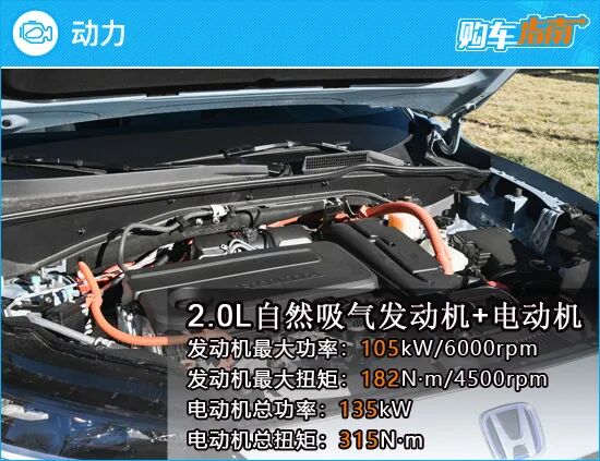 动力上,广汽本田ZR-V致在e:HEV搭载了本田第四代i-MMD混动系统,该系统由2.0L自然吸气发动机+电动机组成,其中2.0L自然吸气发动机最大功率105kW,最大扭矩182N·m。电动机总功率135kW,总扭矩315N·m,传动系统匹配E-CVT变速箱。
