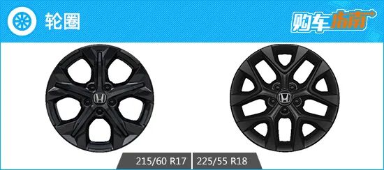 在轮圈方面,锐·精英版以及锐·领先版搭载的是17英寸亮黑烤漆轮圈,与其搭配的轮胎规格为215/60 R17;而锐·豪华版和锐·尊享版搭载的是18英寸熏黑亚光轮圈,与其搭配的轮胎规格为225/55 R18。