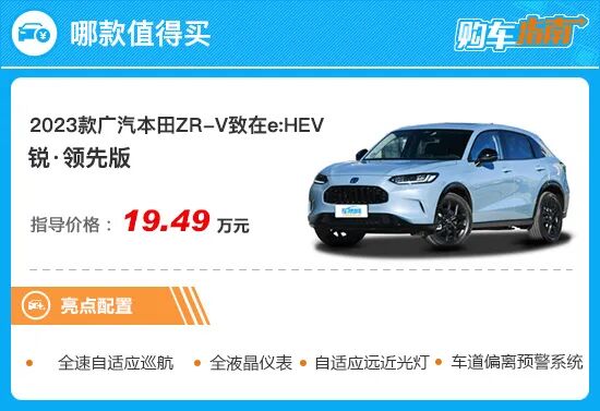 至于两款高配车型来说,首先该车价格略高,售价均超过了20万,虽说他们在舒适性配置上更加全面,例如豪华版的可开启全景天窗,顶配车型独享的电动后备厢、前排座椅加热/通风、HUD抬头数字显示,但这些对于驾驶层面的提升并不大。综合来看,广汽本田ZR-V致在e:HEV锐·领先版在配置以及性价比方面表现出色,购车时可优先考虑。