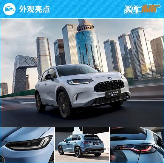 外观上,广汽本田ZR-V致在e:HEV沿用了燃油版的设计风格,整体样式较为圆润,六边形中网由燃油版的蜂窝式变为了直瀑式,同时保险杠造型也更为收敛。在侧面,车顶线条整体呈下降态势,结合从车顶延伸出的尾翼,运动感较为浓郁。车辆尾部造型较为常规,同时还加入了e:HEV标识,显示了其特殊身份。在车身尺寸方面,其长宽高分别为4568mm*1840mm*1611mm(1621mm),轴距为2655mm,与燃油版车型相比并无二致。