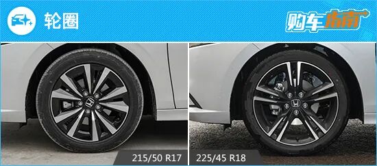 2023款广汽本田型格HATCHBACK燃油版和混动版的入门车型标配17英寸轮圈,其余版本则升级为18英寸轮圈,两者虽然均为双色设计,但明显后者的设计更显精致与动感。