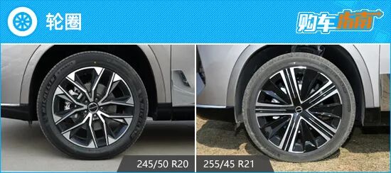 轮圈方面,新车提供三种尺寸轮圈。两驱舒享版匹配的是18英寸基础款轮圈,轮胎为235/60 R18的规格,官方并未公布其样式。四驱尊享版匹配21英寸轮圈,轮胎规格为255/45 R21。除上述两款车型外,其余车型均匹配20英寸轮圈,轮胎规格为245/50 R20。