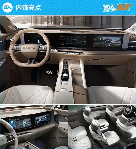 内饰方面,新车采用了兼顾豪华和舒适实用的设计理念,简约并具科技感。棕色搭配浅色的内饰颜色,也让整个车内有一种稳重温馨的感觉。整个内饰,呈现出非常不错的高级感和很强的质感。另外,新车全系采用三联屏设计,并搭载洛神智能座舱系统,该系统采用高通骁龙8155芯片,可以实现智能人机跨屏交互,有着非常出众的功能表现。