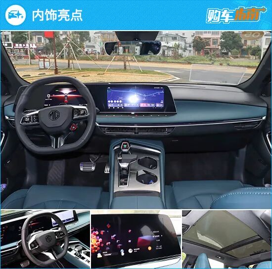 内饰设计较为简约,中控台由大面积麂皮绒材料覆盖,再搭配水波纹压印的细节点缀,颇为豪华大气。配置方面,33英寸一体式显示屏将科技感展现得淋漓尽致,内置高通骁龙8155旗舰级车规芯片,运算速度可达360万亿次/秒。基于强悍的硬件水平,名爵MG7车机系统的UI设计同样可圈可点,界面布局简单明了,功能也十分丰富。
