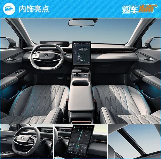 长安逸达内饰造型简洁,平直的中控台搭配贯穿式空调出风口提升了内部层次感。10.25英寸细长的全液晶仪表和13.2英寸中控屏彰显科技感,车机采用了讯飞飞鱼OS 4.0生态系统,同时在MTK8666芯片的加持下,拥有2GHz超高速计算频率。在功能方面,车机系统支持酷我音乐、喜马拉雅FM、导航等功能。在其它配置方面,除入门车型外,其余车型还配有前排手机无线充电、面部识别、车道偏离预警系统等,顶配车型还独享驾驶位座椅加热、手势控制以及负离子发生器等。