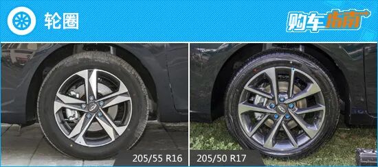 2023款艾瑞泽5 GT提供了两种尺寸三种不同样式的轮圈,其中1.5T入门和中配车型配备16英寸双五辐轮圈,轮胎规格为205/55 R16;1.5T顶配车型搭载17英寸钻石切割镜面刀锋轮圈,轮胎规格为205/50 R17;而1.6T车型则配备17英寸疾风熏黑铝合金运动轮圈,轮胎规格同样为205/50 R17。