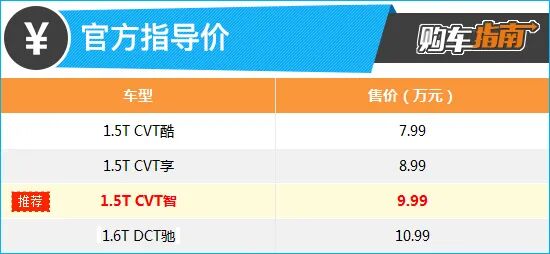 1.5T中配车型增加了部分安全和多媒体配置,额外提供了前排侧气囊,并且标配了雄狮车载智能系统,同时还升级为360度全景影像。不过,除了上述配置之外1.5T中配车型难觅亮点,结合并不便宜的8.99万元定价,性价比依然不高。