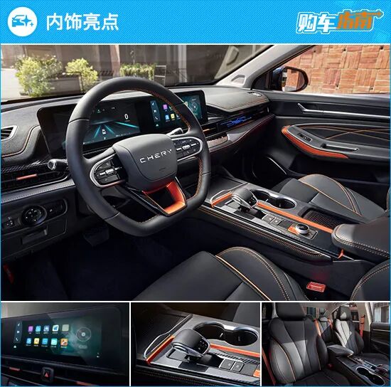 内饰方面,2023款艾瑞泽5 GT采用时下主流的悬浮式双联屏设计,并主打橙黑拼接配色,运动氛围浓厚。此外,新车大幅减少了实体按键数量,搭配触控空调面板以及电子换挡机构,彰显出一定的科技质感。