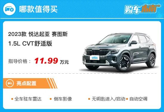 从车型配置来看,次低配舒适版很好地解决了时尚版在配置方面的缺失,增加了全车驻车雷达、倒车影像、发动机启停技术、自动驻车、无钥匙进入/启动以及10.25英寸多媒体触控屏等功能,进一步完善了日常用车体验。而更高一级的豪华版所增配置并不算多,如果想要主流的科技化体验,相比之下不如直接增加2万预算选择顶配尊贵版,不仅高阶功能丰富,并且还提供了L2级辅助驾驶,表现更加全面。所以综合来看,2023款悦达起亚赛图斯的1.5L CVT舒适版最为推荐,购车时可优先考虑。