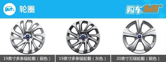 江铃福特领裕顶配车型标配20英寸五辐轮圈,而其余车型则标配19英寸多条辐轮圈,只不过轮圈的颜色有所不同。此外,中配车型还可选装顶配车型的20英寸轮圈。