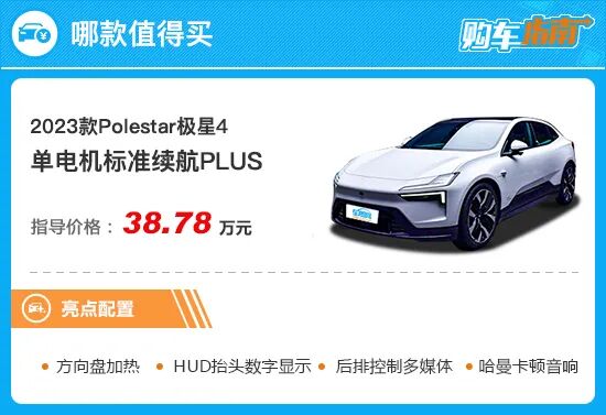 再高一级别车型与推荐车型配置方面保持一致,主要增加了不到100km的CLTC纯电续航里程,售价则多出3万元,显然性价比不高。总的来看,如果您正在关注2023款Polestar极星4,那么单电机标准续航PLUS值得您优先考虑。