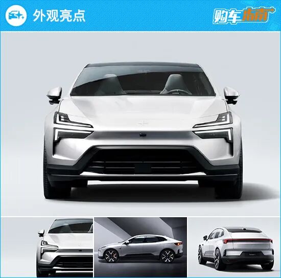 作为Polestar极星品牌旗下的全新车型,新车外观依旧延续家族简洁设计理念。前脸分体式双锋刃前大灯造型十分犀利,并且具有较高的辨识度。车身侧面来看,虽然采用了溜背式设计,但车顶线条在越过后车门边缘后才急剧下滑,保障了后排乘员的头部空间。