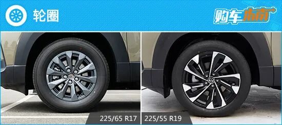 在轮圈方面,长安马自达CX-50行也提供了17英寸铝合金运动轮圈、19英寸铝合金双色切削轮圈两种,与其搭配的轮胎尺寸分别为225/65 R17、225/55 R19。