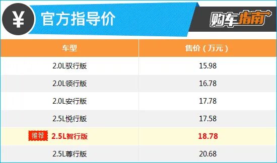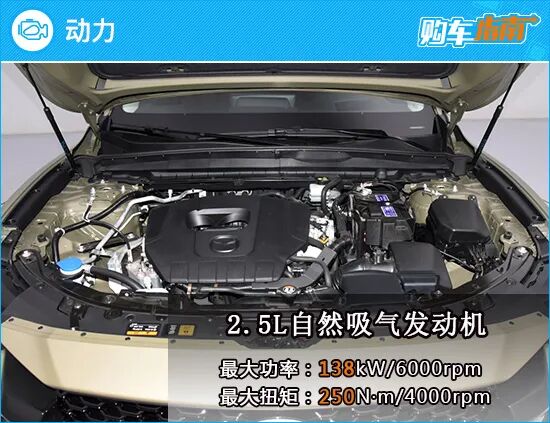 动力方面,新车提供2.0L和2.5L两种自然吸气发动机。其中2.0L发动机最大功率114kW,最大扭矩为200N·m;2.5L发动机最大功率为138kW,最大扭矩为250N·m。传动系统均匹配6速手自一体变速箱。