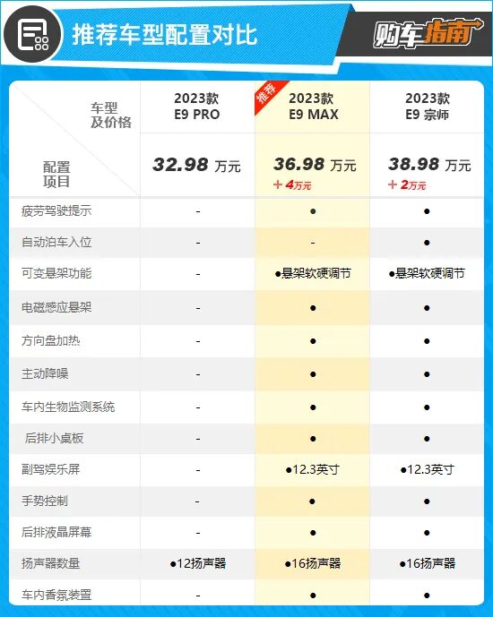 另外,顶配车型比推荐车型贵出2万元,除了前脸的造型有所不同以外,其余多出来的配置还是相对较少的,并且均为锦上添花的高阶配置,平时使用频率也并不太高,个人认为性价比相对薄弱。综合来看,如果您正在关注2023款广汽传祺E9车型,那MAX版值得您优先考虑。