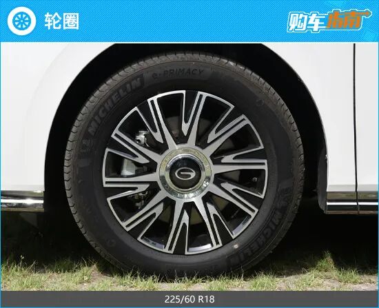 2023款广汽传祺E9全系均采用颜值出色的18英寸多辐铝合金轮圈,并均匹配225/60 R18规格的轮胎。