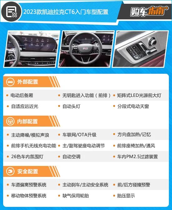 毕竟全新凯迪拉克CT6仍为该品牌的旗舰轿车,所以即便是入门版车型的配置也并不寒酸。其入门的风尚型除了丰富的基础功能外,还提供了电动后备厢、方向盘加热、前排座椅电调/通风/加热、驾驶位座椅记忆功能,以及26色车内氛围灯。而像招牌的33英寸9K屏幕,更是全系标配,诚意十足。但作为一款中大型轿车,对后排乘客的照顾不足,是此次不推荐的原因。