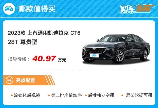 而顶配铂金型与推荐车型相比多出了自动泊车入位、感应后备厢以及HUD数字抬头显示功能,但价格却高出了整整6万元,性价比着实不高。综合来看,2023款上汽通用凯迪拉克CT6 28T 尊贵型最值得推荐,购车时可优先考虑。