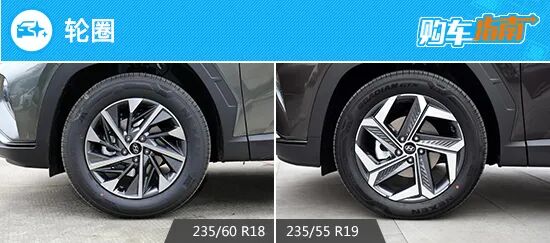 2021款北京现代途胜L提供了三种尺寸的轮圈,其中,入门的GLS领先版为17英寸轮圈,具体轮胎尺寸为235/65 R17。高一级别的GLX精英版为双色多辐式18英寸铝合金轮圈,造型颇为时尚,具体轮胎尺寸为235/60 R18。此外,顶配和次顶配车型则配备了19英寸双色五辐铝合金轮圈,运动氛围更强,轮胎具体尺寸为235/55 R19。