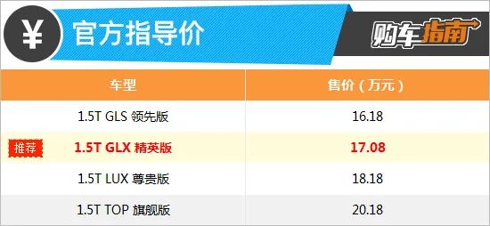 综合配置表信息来看,GLX精英版更值得推荐。与入门车型相比,推荐车型新增了像全车车窗一键升降、外后视镜加热/电动折叠、无钥匙进入/启动、可开启全景天窗、后排空调出风口等多项实用配置,且这些配置无法通过后期加装获得,所以相较而言,显然推荐车型能够提供更为舒适便捷的用车体验。