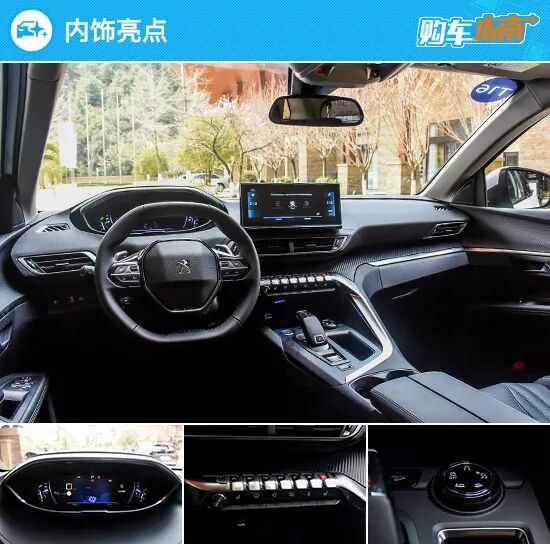 内饰部分,新车依旧采用家族经典的i-Cockpit唯我座舱设计。中控台整体倾向于驾驶员一侧,由方向盘、中控区以及换挡杆组成的“黄金三角区”结构布局十分紧凑,不仅美观,而且还保证了极佳的实用性。设计方面,新车并未进行太多调整,升级主要集中在内饰用料部分,在中控台以及门板等处均加入了大面积碳纤维饰板,营造出极强的运动感。同时,小尺寸双辐方向盘、“飞航式”按键以及多路况选择旋钮等经典配置均有所保留。10英寸悬浮式中控屏尺寸适中,分辨率为1920*720,内置最新的Blue-i2.0智能互联系统,支持语音控制、手机互联、在线导航以及紧急救援呼叫功能等。