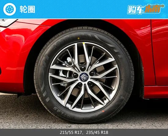 轮胎方面,新车全系标配双五辐式铝合金轮圈,样式看上去比较时尚。尺寸规格方面,顶配车型标配235/45 R18轮胎尺寸,而其余车型则标配215/55 R17轮胎尺寸。