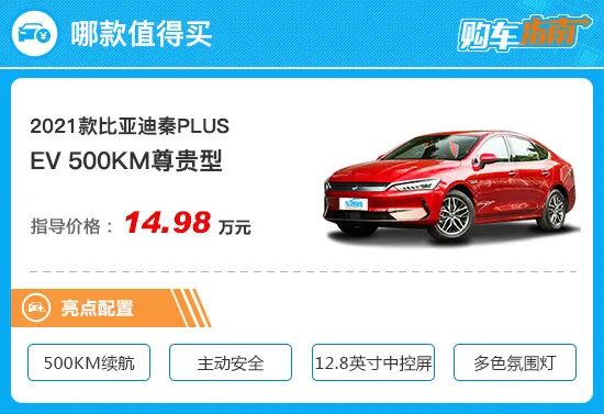 反观顶配车型,虽然比推荐车型多出了大尺寸轮圈和前/后排座椅加热配置,续航里程也有所提升,但价格上还要多花费1.7万元,显然性价比不高。综合来看,如果您正在关注比亚迪秦PLUS EV车型,那么2021款 EV 500尊贵型值得您优先考虑。