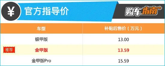 而对于顶配车型来说,该车比推荐车型仅多出了前排侧气囊和头部气帘,并且将续航里程提升了81km,考量顶配车型要比推荐车型贵出足足2万元,性价比就并不高了。总的来看,金甲版在3款车型中综合性价比较高,建议在购买时可优先考虑。