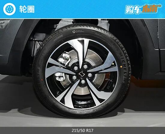 轮圈方面,新车全系标配17英寸轮圈,旋风式的轮圈造型十分运动,不过少了些新能源车型气息。轮胎方面,新车匹配的是215/50 R17米其林浩悦4代轮胎,主打静音与安全,颇具诚意。