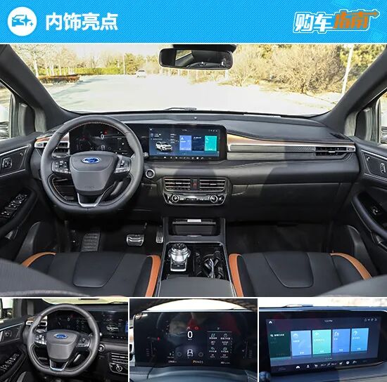 仪表盘右侧为13.2英寸多媒体触控屏,内部搭载了SYNE+智行信息娱乐系统,操作起来十分流畅,基本不存在卡顿的情况。此外,新车还配备了基于蜂窝车联网技术的福特车路协同系统,可实现车辆智能设备与城市交通云控平台之间的实时互联,为车主推送红绿灯信息、倒数计时、绿灯起步等提醒。
