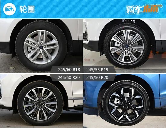 轮圈方面,新车提供5种不同样式供消费者选择,其中,上图中的右下款还提供有熏黑样式,不过暂未找到图片,尽请见谅。此外,除低配和次低配车型外,其余车型均搭载20英寸轮圈,具体规格为245/50 R20。