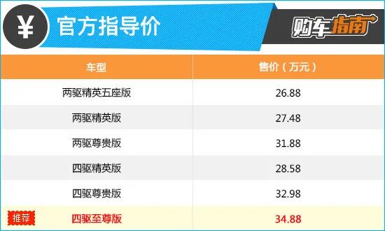 而从性价比来讲,推荐车型比高配车型仅贵出1.9万元,但舒适性、便利性和安全辅助配置都有明显提升,对于30万元级中型SUV来说,性价比也更高。总的来看,四驱至尊版车型在6款车型中综合性价比较高,建议在购买时可优先考虑。